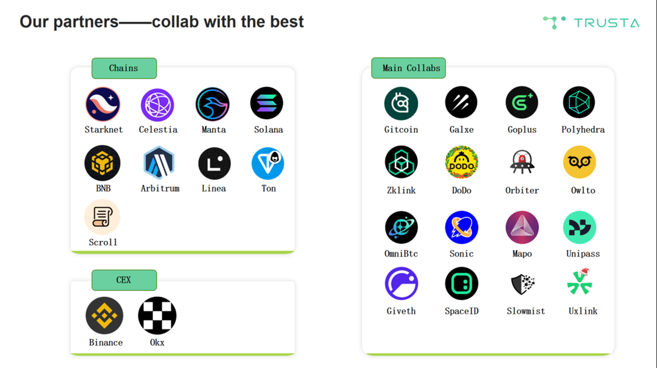 Trusta.AI has provided exclusive airdrop consulting and Sybil prevention for notable projects such as Celestia, Starknet, Manta, Sonic and Plume. The platform has partnered with leading services such as Binance for monthly monitoring, Galxe for Web3 scoring, and Gitcoin Passport. It stands out as the top POH attestation provider on LINEA.