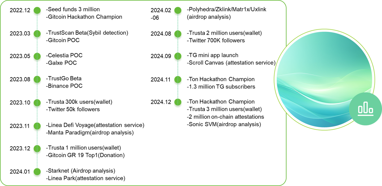 Trusta.AI has achieved significant milestones as the largest Identity and On-Chain Reputation Protocol, featuring three main products: Trustgo, Trustscan and Trusta Agent.